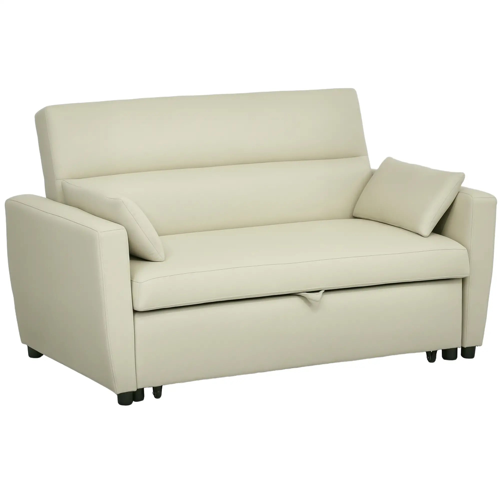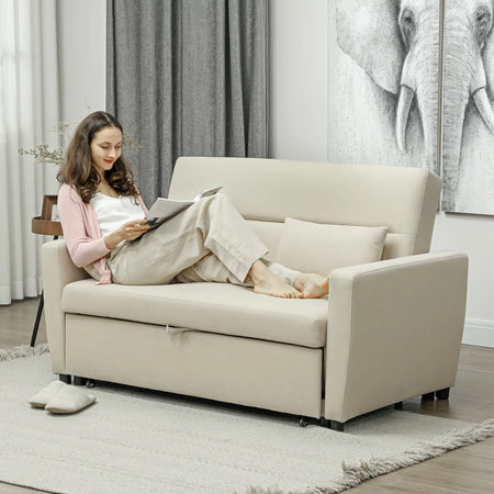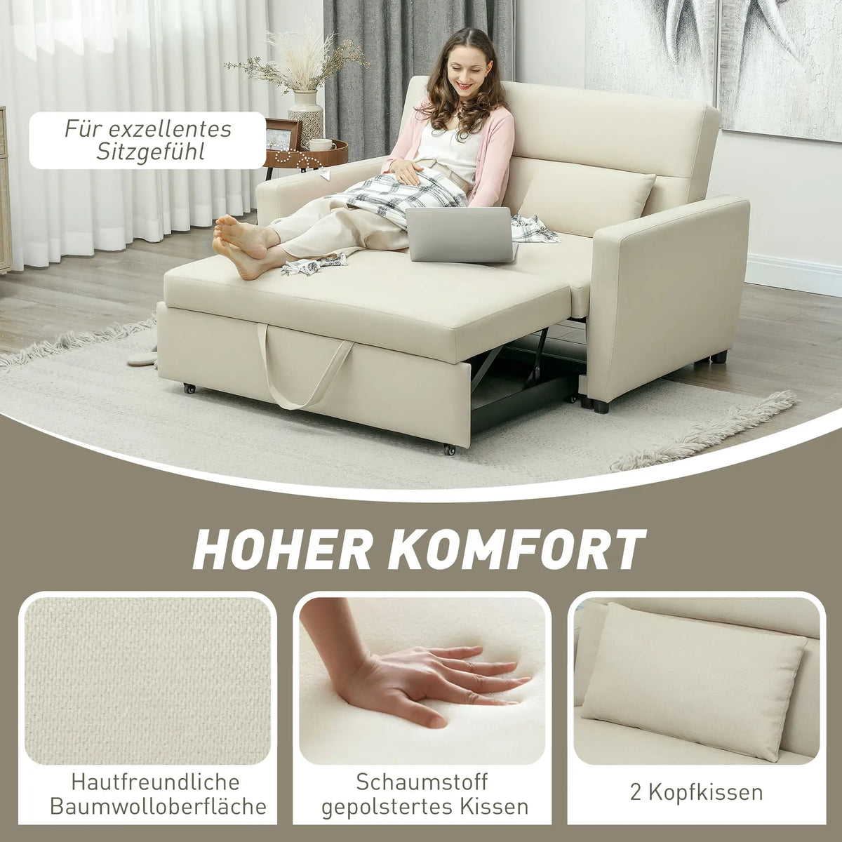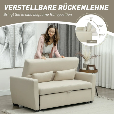2-Seater Sofa Bed with Adjustable Backrest, Velvet Upholstery, for Living Room or Bedroom – Beige